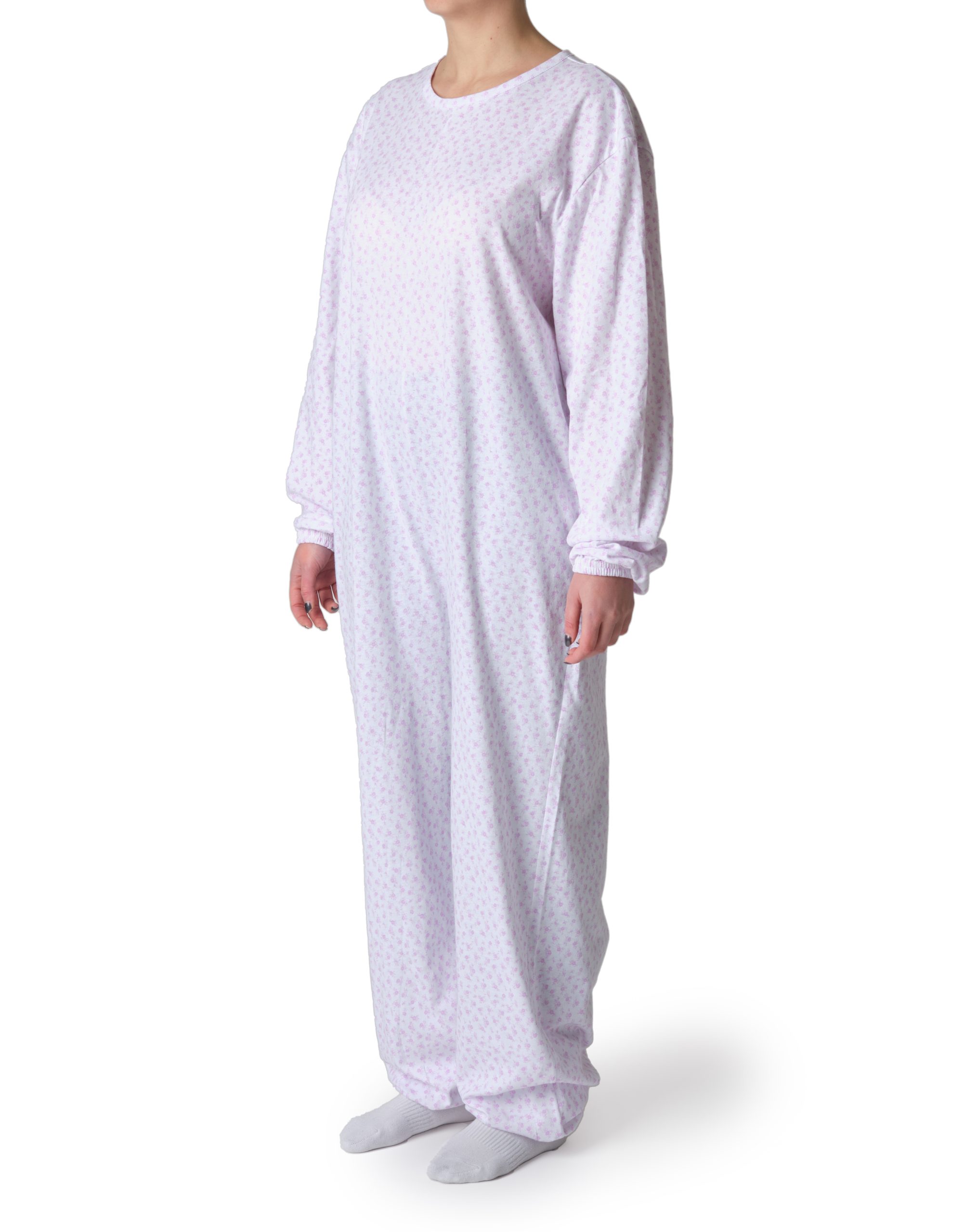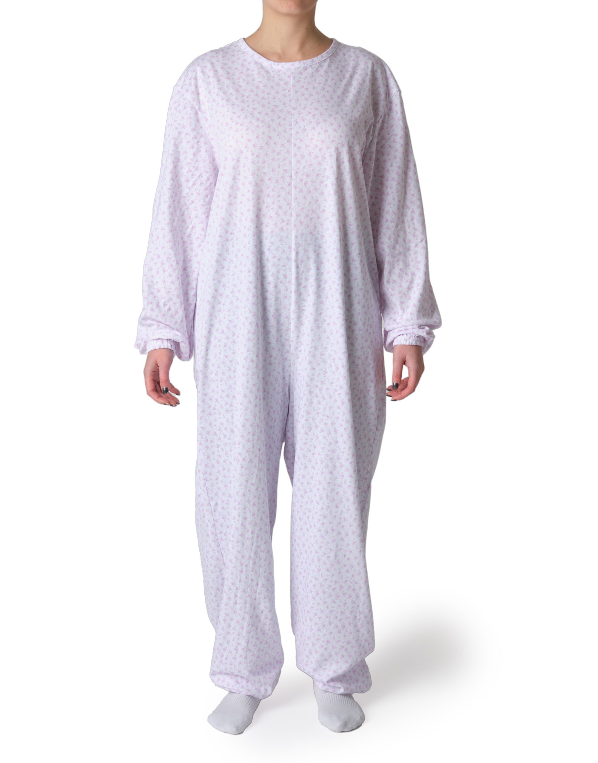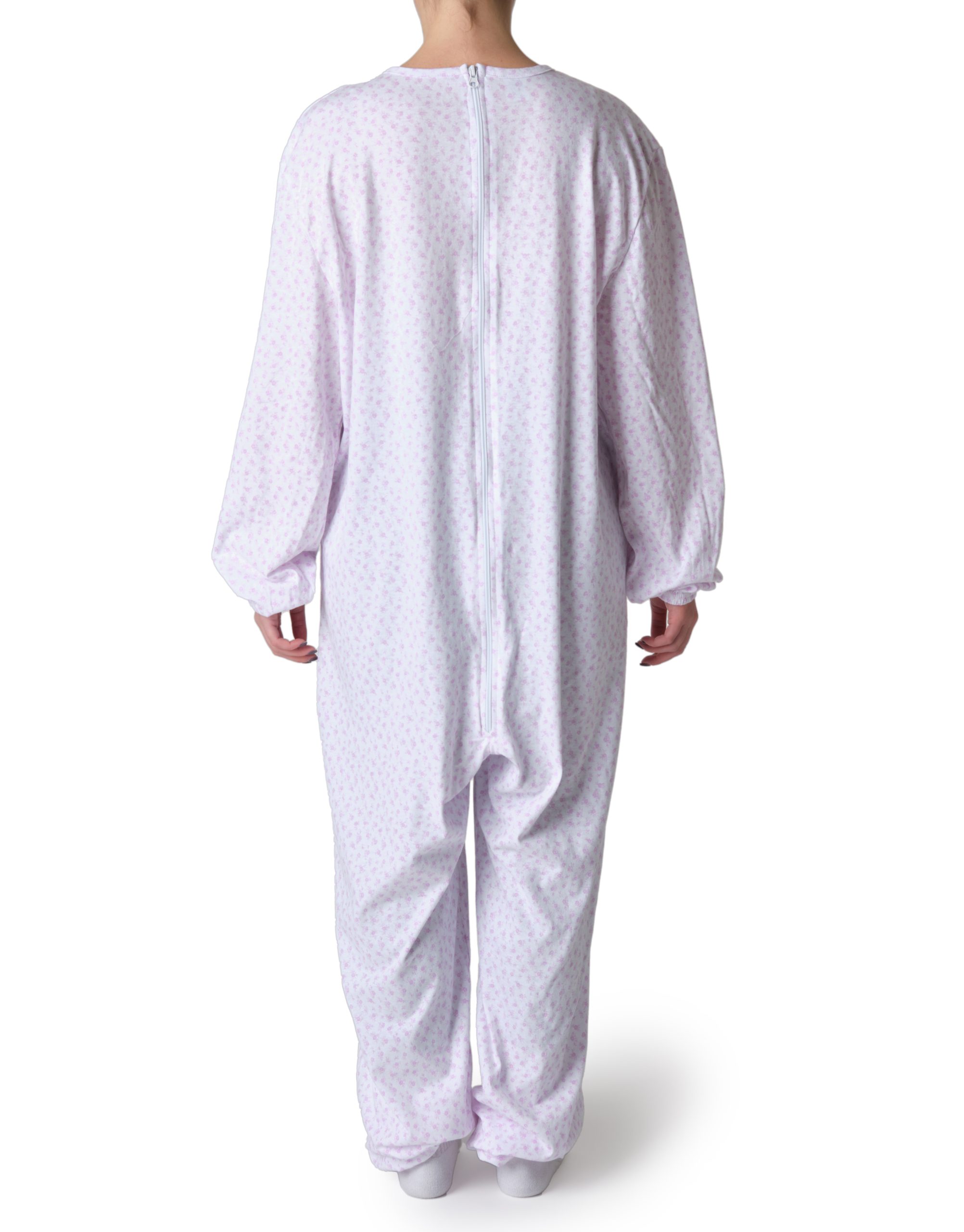 Pigiama sanitario estivo donna con cerniera posteriore – Fiore monocolore rosa